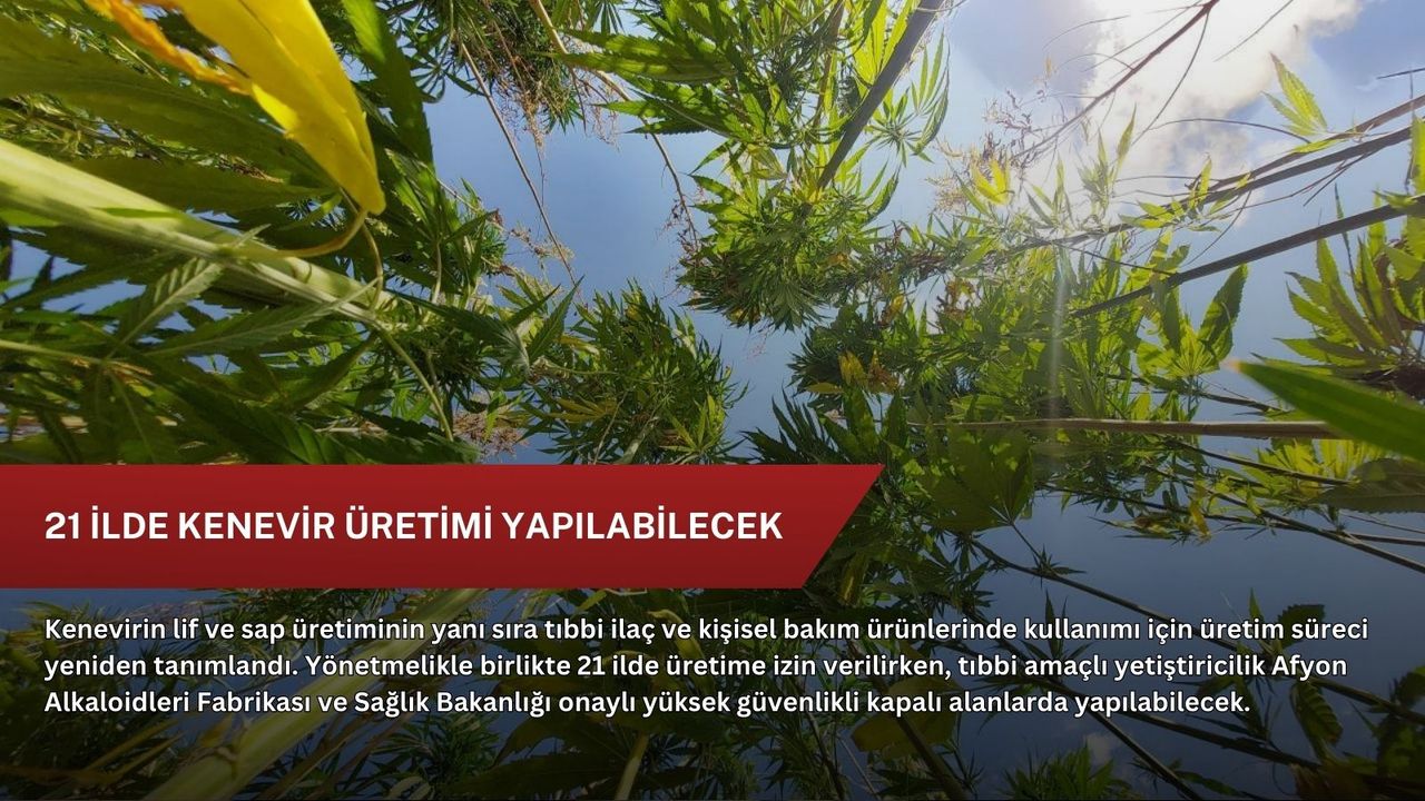 Kişisel bakım ve destek ürünleri üretimi amaçlı kenevir yetiştiriciliği, açık ya da kapalı alanlarda olmak üzere lif, sap ve tohum üretimine izin verilen illerle tıbbi ve sağlık ürünlerinin yetiştirildiği yerlerde yapılabilecek.
