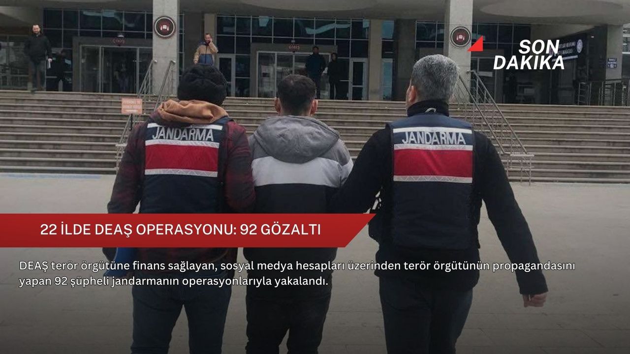 Operasyonda, DEAŞ terör örgütüne finans sağlayan, sosyal medya hesapları üzerinden terör örgütünün propagandasını yapan 92 şüpheli gözaltına alındı.