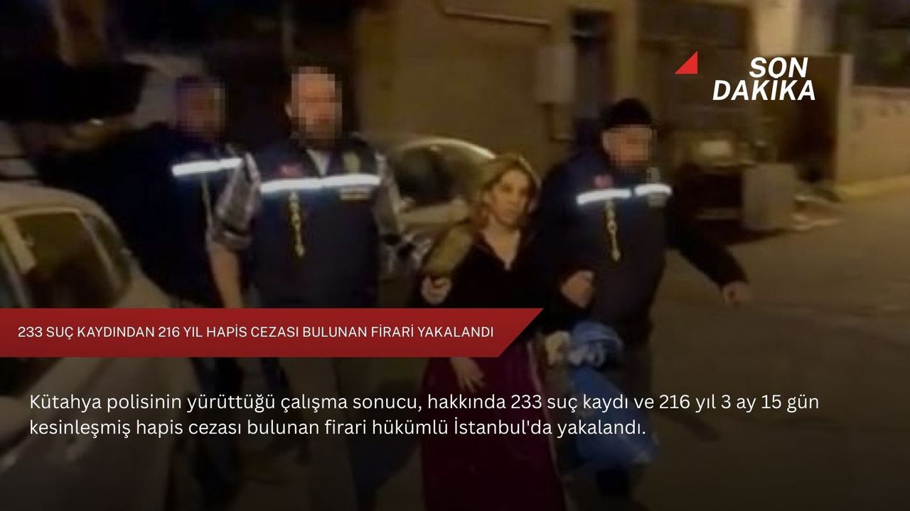 Belirlenen adrese düzenlenen operasyonla yakalanan Mine U'nun, 16 ayrı dosyadan arandığı ve hakkında 216 yıl 3 ay 15 gün kesinleşmiş hapis cezası bulunduğu belirlendi.