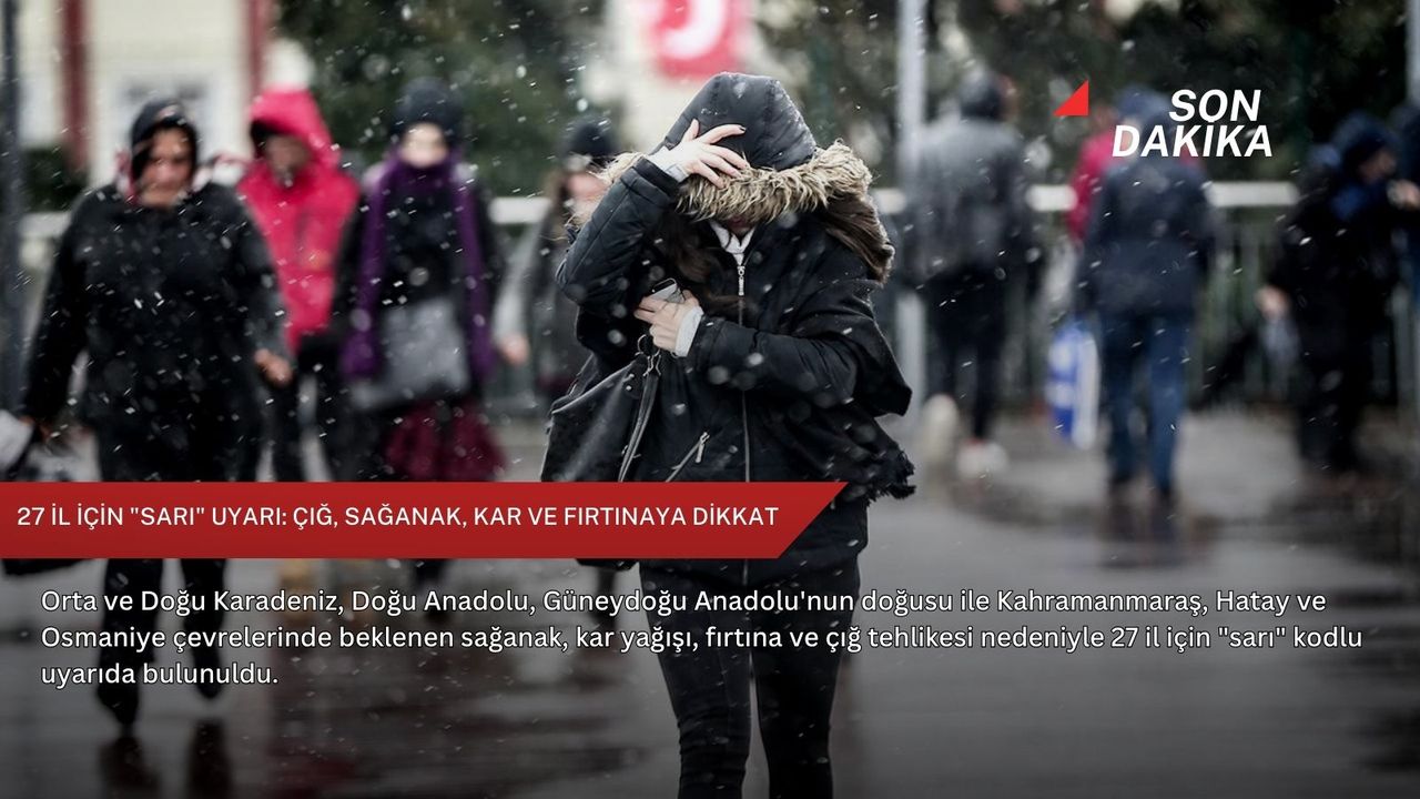 Öte yandan, Ağrı, Artvin, Bingöl, Bitlis, Diyarbakır, Erzincan, Erzurum, Giresun, Gümüşhane, Hakkari, Hatay, Kars, Kahramanmaraş, Muş, Ordu, Rize, Samsun, Siirt, Trabzon, Tunceli, Van, Bayburt, Batman, Şırnak, Ardahan, Iğdır ve Osmaniye için "sarı" kodlu uyarıda bulunuldu.