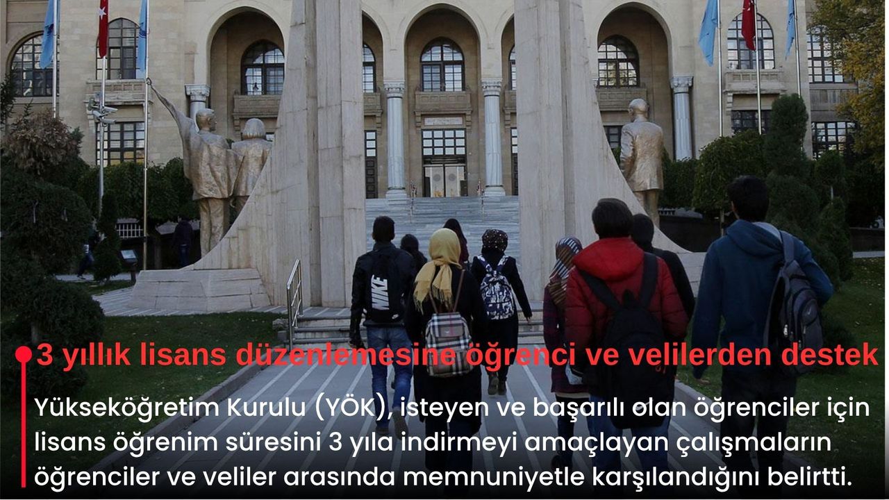 Diğer öğrenciler de üniversitelerini 4 yıl okumanın ekonomik olarak kendilerini zorladığını, 3 yıla düşürülmesinin ailelere de maddi açıdan olumlu yansıyacağını ifade ederek, bunun Türkiye'nin iş gücü için de önemli bir adım olduğunu vurguladı.