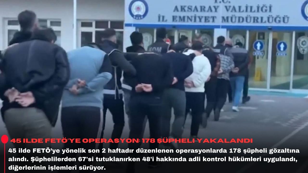 Son iki haftada 45 ilde yapılan operasyonlarda 178 şüpheli yakalandı. Şüphelilerden 67'si tutuklanırken 48'i hakkında adli kontrol hükümleri uygulandı, diğerlerinin işlemleri devam ediyor.