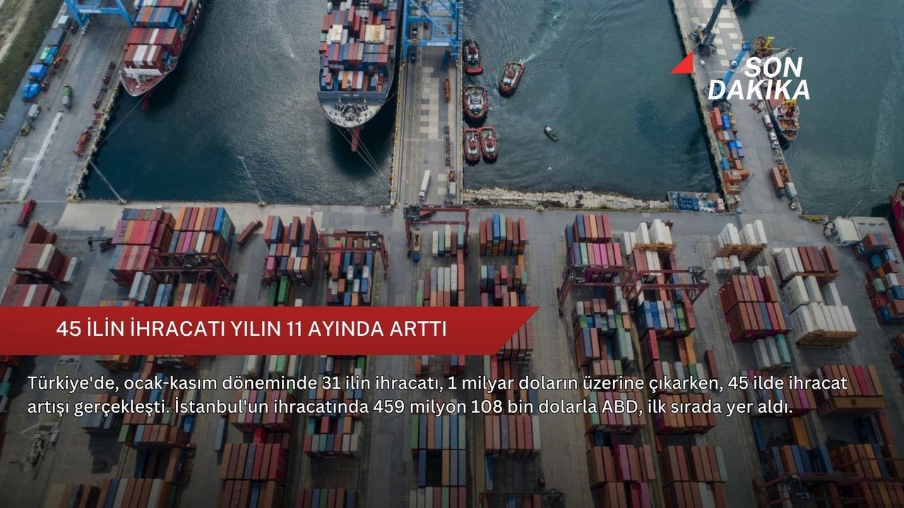 Buna göre, ocak-kasım döneminde 31 il, 1 milyar doların üzerinde ihracat yaptı, 45 il de ihracatını artırdı.