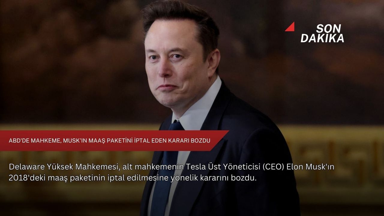 Delaware Mahkemesi Yargıcı Kathaleen McCormick, geçen yıl ocak ayında "akılalmaz bir meblağ" olduğu ve "şirketin yönetim kurulu tarafından adil olmayan bir şekilde belirlendiği" gerekçesiyle Musk'ın yaklaşık 56 milyar dolar değerindeki maaş paketinin iptal edilmesinin önünü açmıştı.