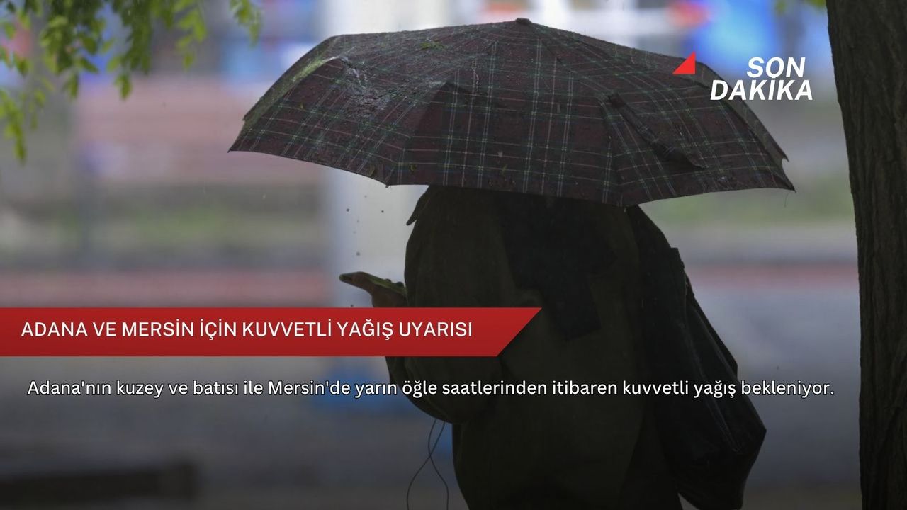 Meteoroloji Genel Müdürlüğü tarafından yapılan tahmine göre, yarın öğle saatlerinden itibaren Adana'nın kuzey ve batısı ile Mersin'de kuvvetli sağanak ve yer yer gök gürültülü sağanak bekleniyor.