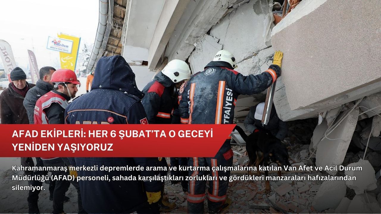 Kahramanmaraş'ın Pazarcık ilçesinde 6 Şubat'ta meydana gelen depremlerin ardından bölgeye yönlendirilen Van AFAD ekipleri, etkilenen illerde görev yaptı.