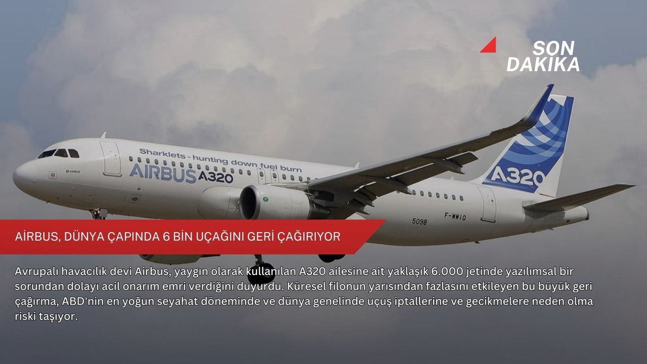 Havacılık devi Airbus, 55 yıllık tarihinde gördüğü en büyük geri çağırmalardan birini başlatarak, A320 ailesi uçaklarının yazılımlarında acil düzeltme yapılması talimatını verdi. Bu durum, A320'nin kısa süre önce en çok teslim edilen uçak modeli olarak Boeing 737'yi geride bırakmasından sadece haftalar sonra gerçekleşti.