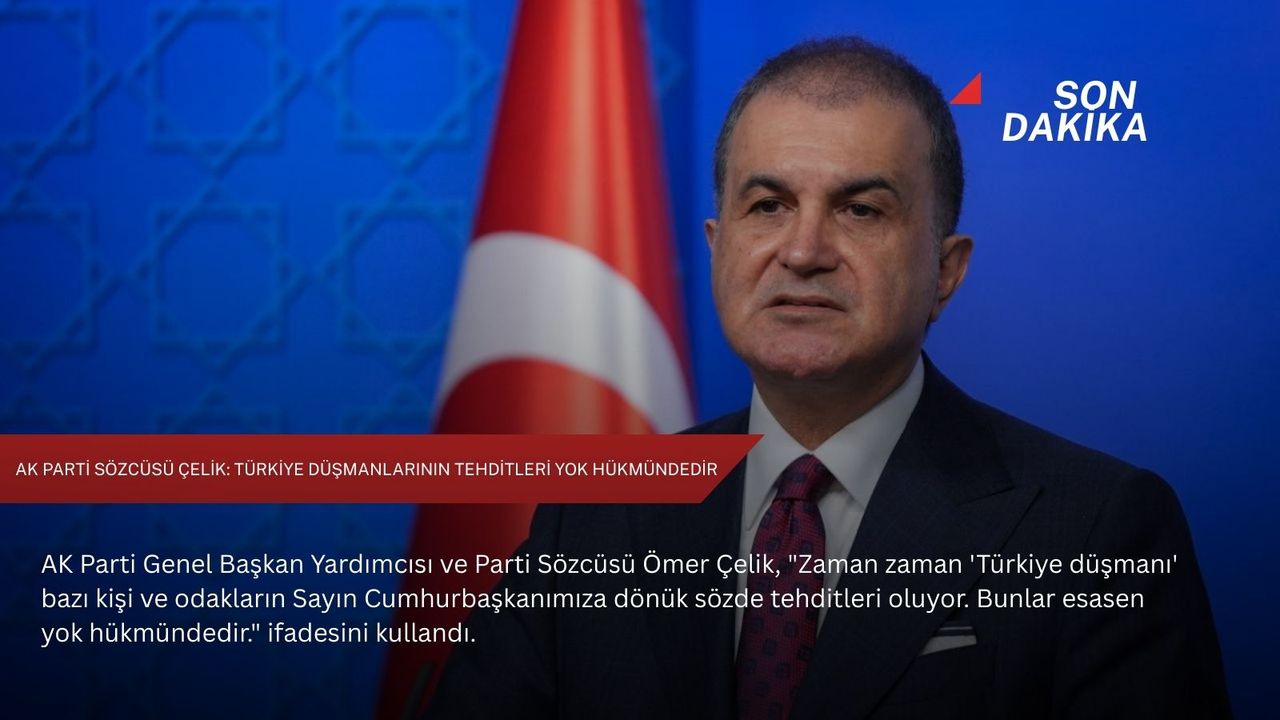 AK Parti Genel Başkan Yardımcısı ve Parti Sözcüsü Çelik, NSosyal hesabından yaptığı paylaşımda, "Zaman zaman 'Türkiye düşmanı' bazı kişi ve odakların Sayın Cumhurbaşkanımıza dönük sözde tehditleri oluyor. Bunlar esasen yok hükmündedir." değerlendirmesinde bulundu.