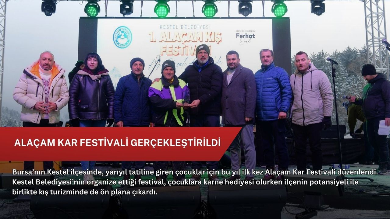 Kestel Alaçam’daki Kar Festivali, yarıyıl tatilinde ailelerden yoğun ilgi görürken etkinliğin her yıl geleneksel hale getirilmesi talep edildi… Doğasıyla öne çıkan Kestel’in kış turizmi ile iç içe olan Alaçam Kar Festivali’nde ilçede dört mevsim yaşanabilir ve ziyaret edilebilir bir merkez olduğu bir kez daha gözler önüne sergilenmesi de sağlandı... Festival süresince oluşturulan kayak ve kızak alanlarında çocuklar ve gençler doyasıya eğlenirken, her yaştan vatandaşımıza hitap eden konserler ve çeşitli etkinlikler alanı adeta bir şenlik havasına bürüdü.