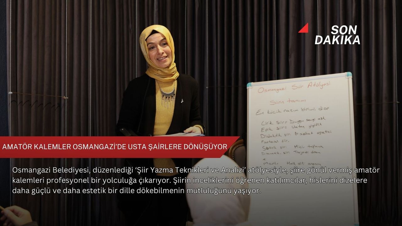 Hayata geçirdiği zengin içerikli programlarla adından söz ettiren Osmangazi Belediyesi, 7’den 70’e herkese hitap eden yeni bir kültür hizmetine daha imza attı. Şiiri bir hobi olarak gören, fakat içindeki şairi ortaya çıkarmak isteyen amatörlere yönelik düzenlenen ‘Şiir Yazma Teknikleri ve Analizi’ atölyesi, katılımcıları şiirin büyülü dünyasına çıkarttı. Şiire ilgi duyan sanatseverler, düzenlenen bu anlamlı atölyeye büyük bir heyecanla katıldı. Gençlik ve Girişimcilik Merkezi’nde gerçekleştirilen çalışmalarda Kültür Bakanlığı Halk Şairi ve Yazarı Eğitmen Hatice Türkmen Yurtseven, katılımcıları şiirin tarihsel yolculuğundan türlerine, ölçüsünden kafiyesine kadar geniş bir bilgi dünyasıyla buluşturdu.