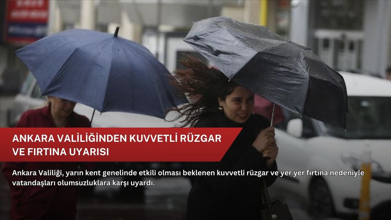 Ankara Valiliğinin NSosyal hesabından yapılan açıklamada, Meteoroloji Genel Müdürlüğü Analiz ve Tahmin Merkezinden alınan son verilere göre, rüzgarın, yarın Ankara genelinde güney yönlerden kuvvetli rüzgar ve yer yer fırtına şeklinde eseceği belirtildi.