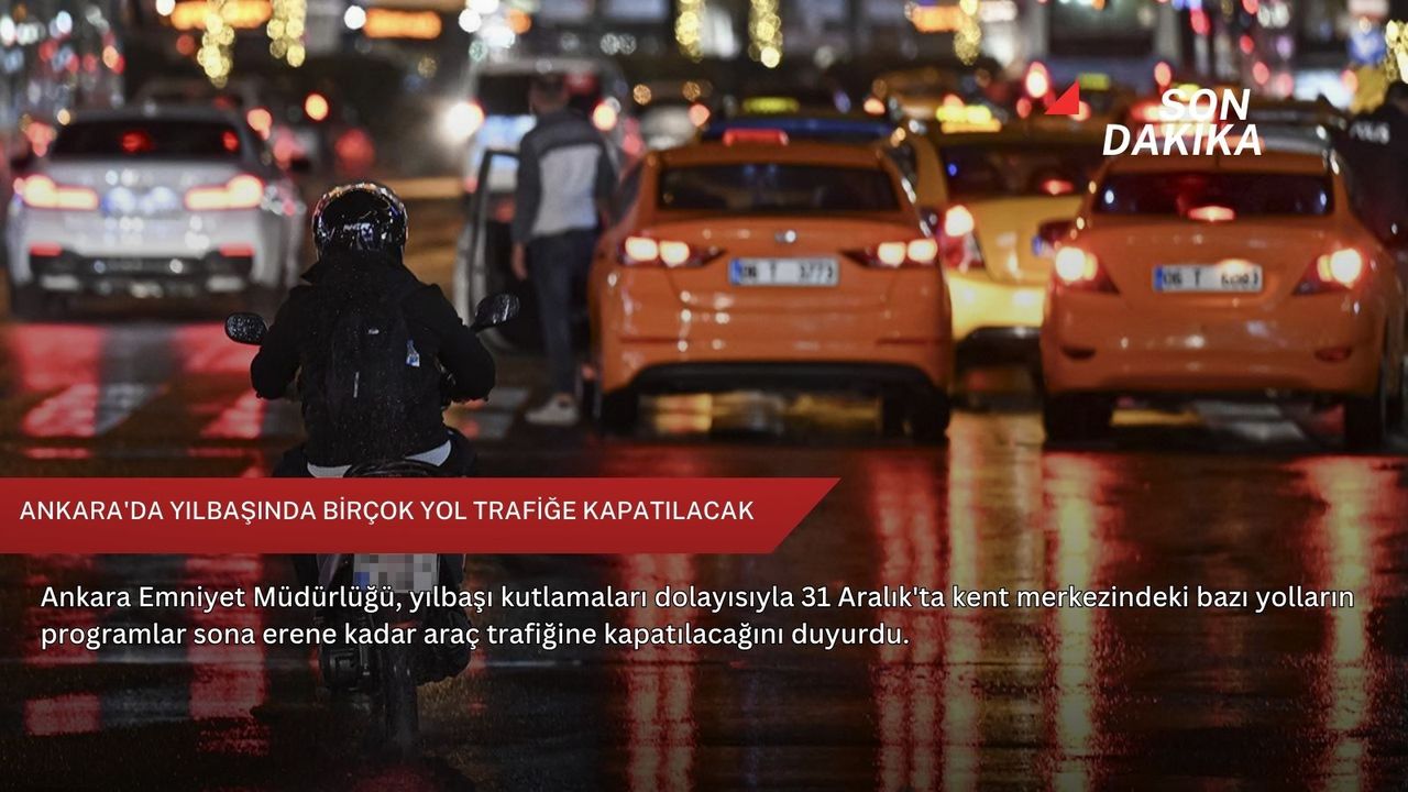 Ankara Emniyet Müdürlüğünden yapılan açıklamaya göre, 31 Aralık Çarşamba günü saat 18.00'den itibaren, Atatürk Bulvarı'nın Sıhhiye Orduevi ile Akay Kavşağı arasında kalan bölümü, GMK Bulvarı, Milli Müdafaa, Aşkabat (Bahçeli 7. Cadde) ve Bestekar caddelerinin tamamı trafiğe kapatılacak.