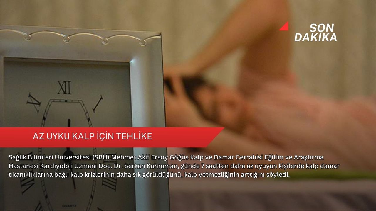 Kalitesiz uykunun kalp krizi ve ritim bozuklukları riskini artırdığını belirten Kahraman,"Az uyursak vücuttaki inflamasyon dediğimiz iltihabi süreç tetikleniyor. Bu da kalp damar tıkanıklıklarını arttırıyor. Günde 7 saatten daha az uyuyan kişilerde kalp damar tıkanıklıklarına bağlı kalp krizleri daha sık görülüyor. Ayrıca kalp yetmezliği artmakta ve ritim bozuklukları daha sık görülmektedir" dedi.