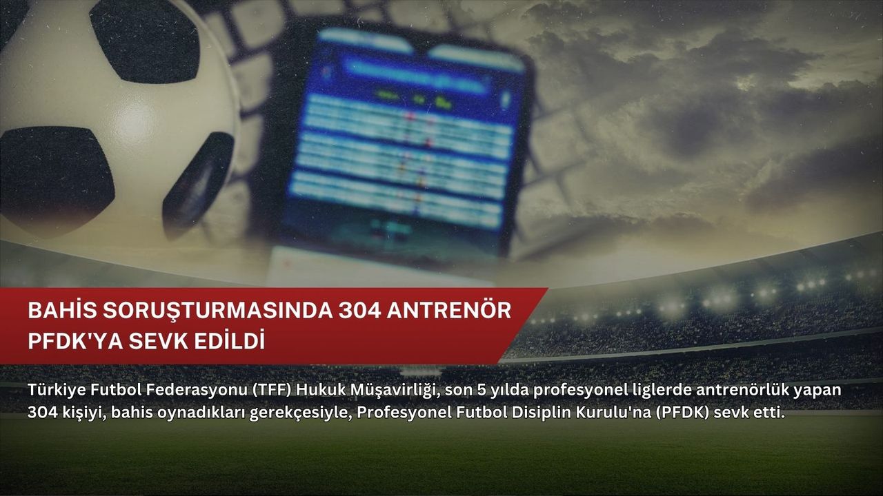 TFF'den yapılan açıklamada, son 5 yılda profesyonel liglerde 'Atletik Performans Antrenörü, Kaleci Antrenörü, Maç Analizi Antrenörü ile Oyuncu ve Maç İzleme Antrenörü' olarak görev alan 304 kişinin bahis oynadıkları gerekçesiyle tedbirli olarak disipline gönderildiği belirtildi.