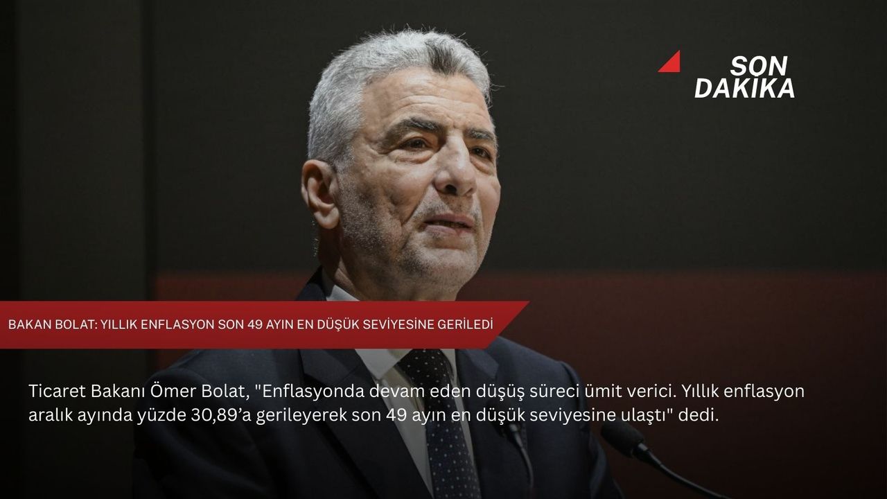 Bakan Bolat, Aralık ayı itibarıyla aylık enflasyonun yüzde 0,89 olarak gerçekleştiğini belirterek, yıllık enflasyonun yüzde 30,89’a gerilediğine dikkati çekti. Bu rakamın son 49 ayın en düşük seviyesi olduğunu vurgulayan Bolat, şu bilgileri paylaştı: