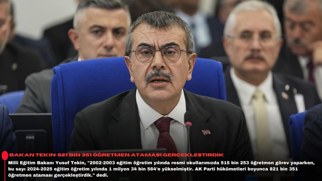 AK Parti hükümetlerinin, eğitimi, devlet politikalarının merkezine yerleştirdiğinin altını çizen Tekin, Milli Eğitim Bakanlığının, merkezi yönetim bütçesinde 2002'de 4'üncü sıradayken, 2003'ten itibaren ilk sırada yer aldığına ve 2026 yılı bütçesinde de yerini koruduğuna işaret etti.