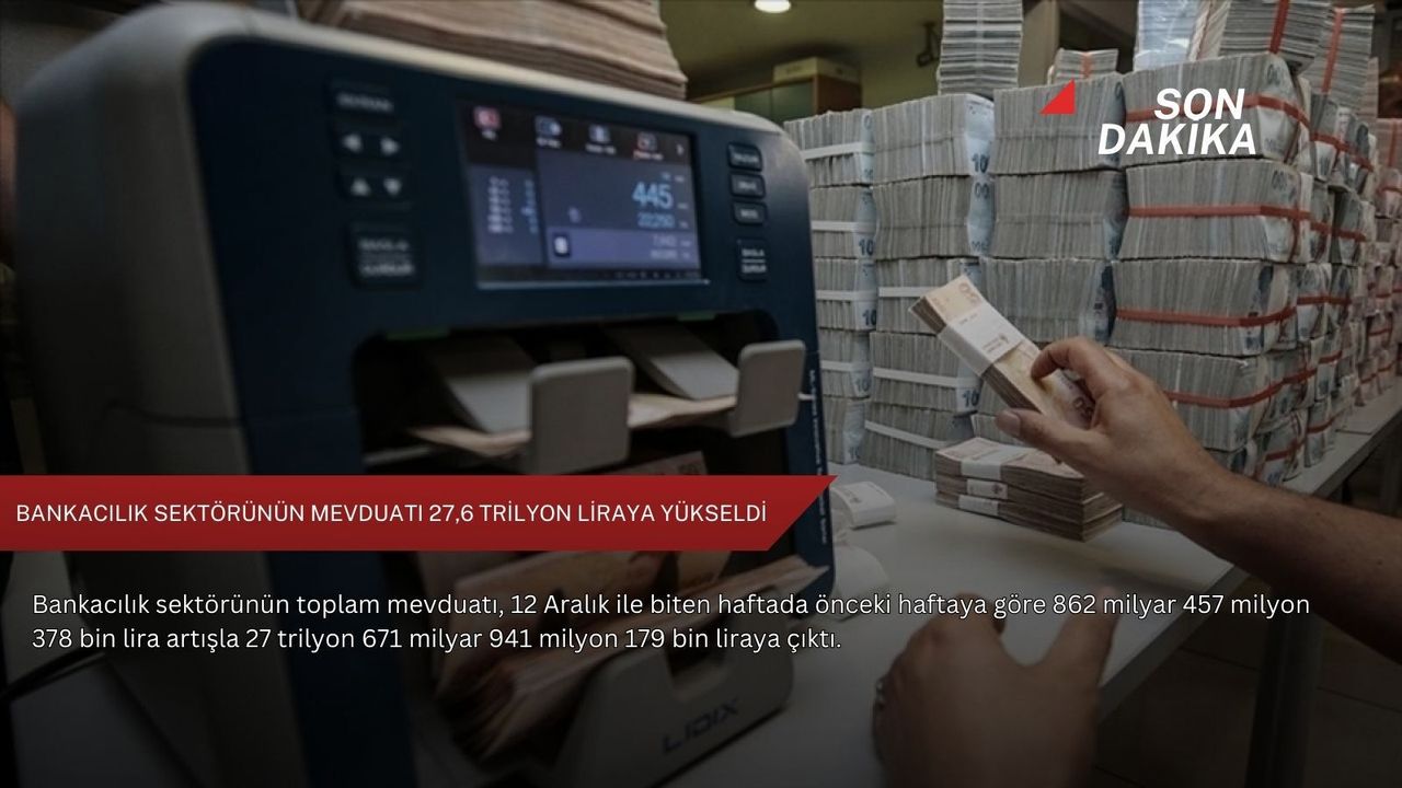 Buna göre, bankacılık sektörünün toplam mevduatı 12 Aralık ile biten haftada yüzde 3,2 yükselişle 862 milyar 457 milyon 378 bin lira artarak 26 trilyon 809 milyar 483 milyon 801 bin liradan, 27 trilyon 671 milyar 941 milyon 179 bin liraya çıktı.