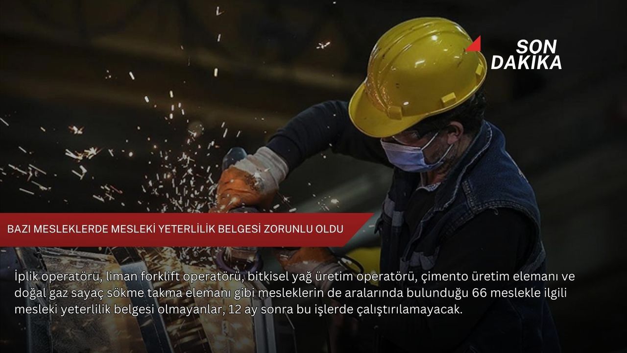 2019/1 sayılı tebliğde yapılan değişikliğe göre, tehlikeli ve çok tehlikeli işlerden olup Mesleki Yeterlilik Kurumu tarafından standardı yayımlanan ve aralarında ağır vasıta tecrübe sürücüsü, armürlü dokuma kumaş desen hazırlama elemanı, deri işlenti operatörü, iplik operatörü ve liman forklift operatörü gibi mesleklerin bulunduğu 26 meslekte, Mesleki Yeterlilik Belgesine sahip olmayan kişiler, bugünden itibaren 12 ay sonra çalıştırılamayacak.