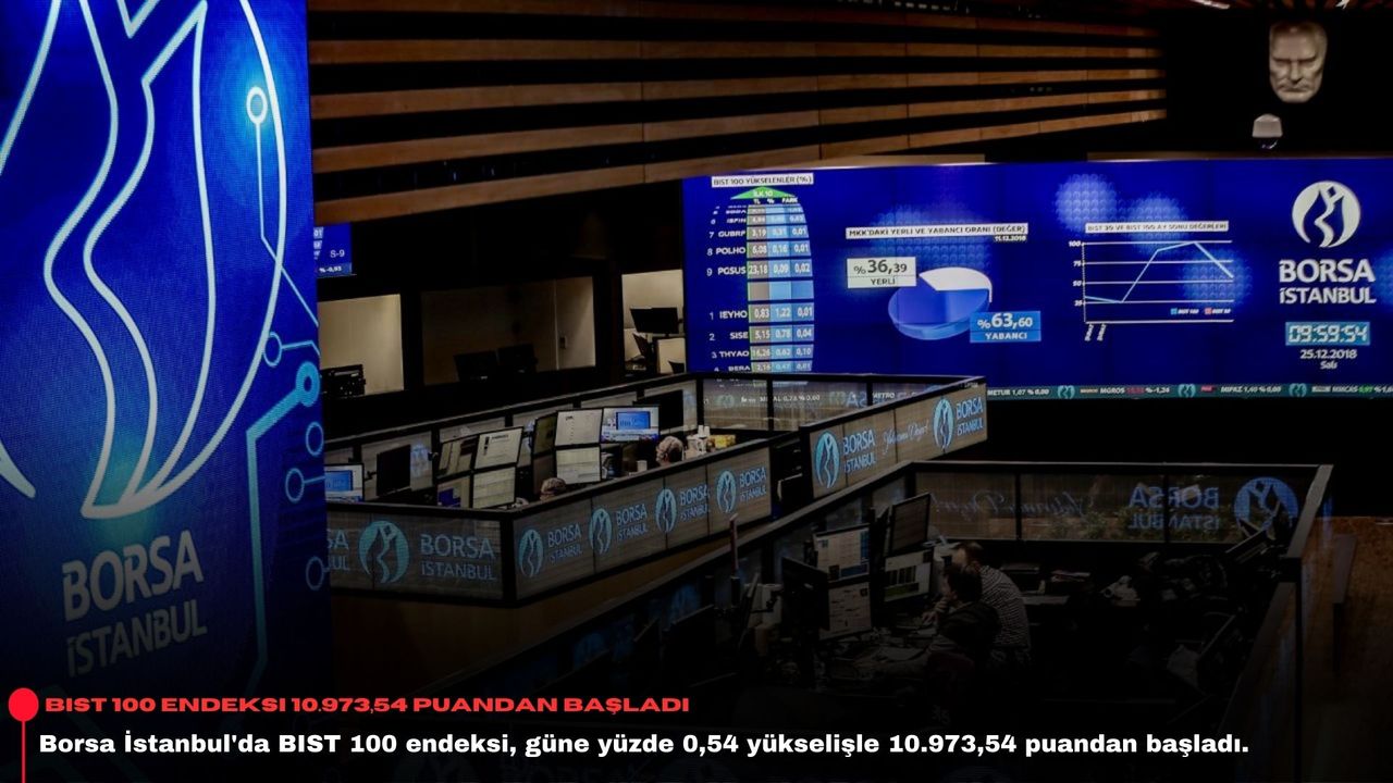 Açılışta BIST 100 endeksi, önceki kapanışa göre 58,89 puan ve yüzde 0,54 artışla 10.973,54 puana çıktı. Bankacılık endeksi yüzde 0,91, holding endeksi yüzde 0,33 yükseldi.