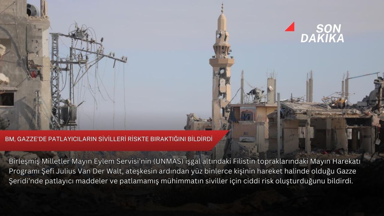 Van Der Walt, "Gazze'deki yapıların yaklaşık yüzde 81'inin hasarlı veya tamamen yıkılmış olduğu değerlendirildi. Bu enkazın içinde, aralarında gizlenmiş olabilecek patlayıcı mühimmat da var." şeklinde konuştu.