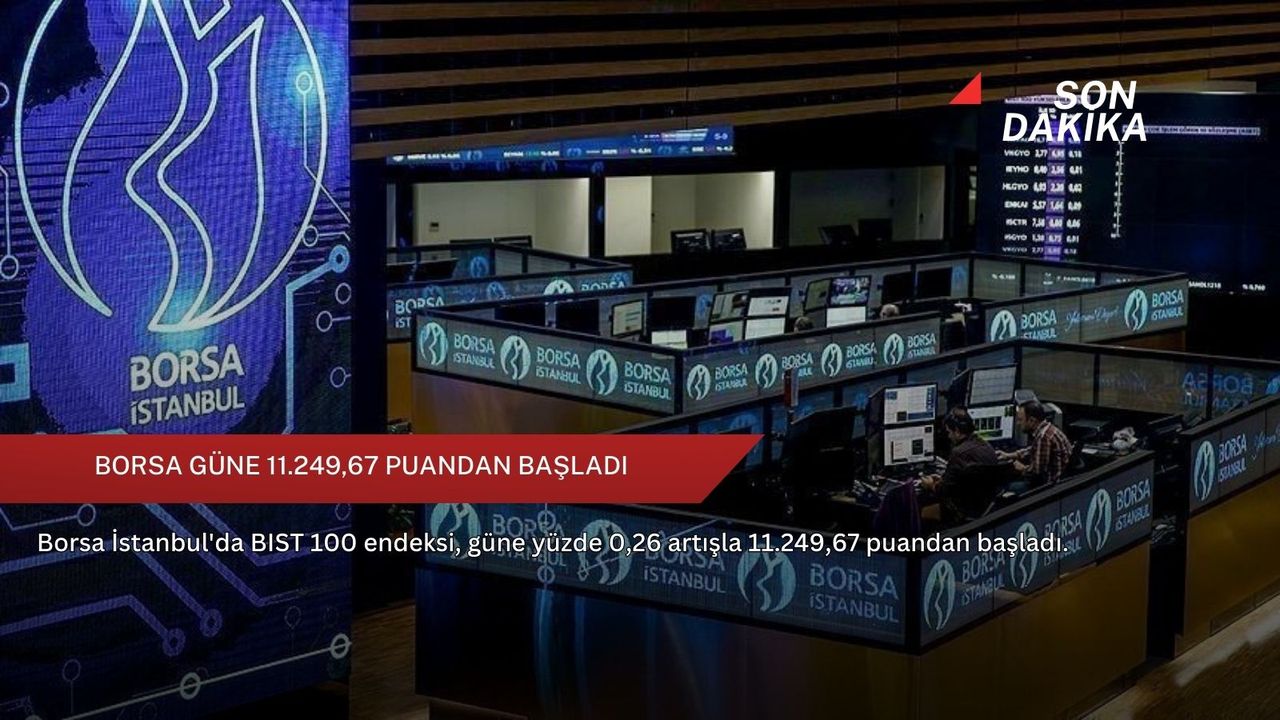 Açılışta BIST 100 endeksi, önceki kapanışa göre 29,50 puan ve yüzde 0,26 artışla 11.249,67 puana çıktı. Bankacılık endeksi yüzde 0,28 değer kazanırken, holding endeksi yüzde 0,63 değer kaybetti.
