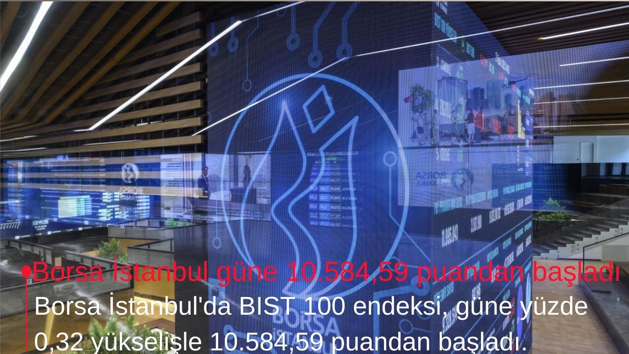 Açılışta BIST 100 endeksi, önceki kapanışa göre 33,25 puan ve yüzde 0,32 artışla 10.584,59 puana çıktı. Bankacılık endeksi yüzde 0,19, holding endeksi yüzde 0,50 yükseldi.