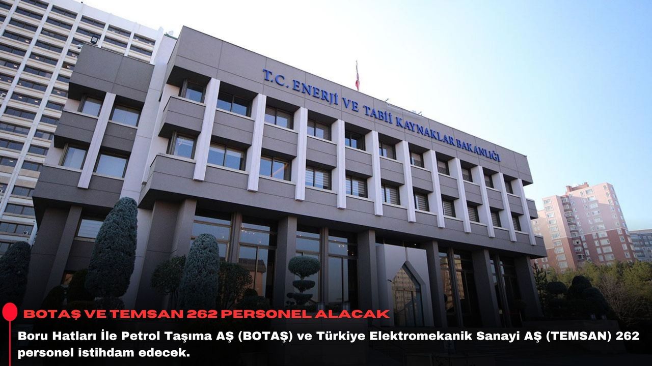 BOTAŞ'ın 223, TEMSAN'ın 39 personel alacağı başvurular için detaylı bilgiye "https://www.iskur.gov.tr" sitesinden ulaşılabilecek.