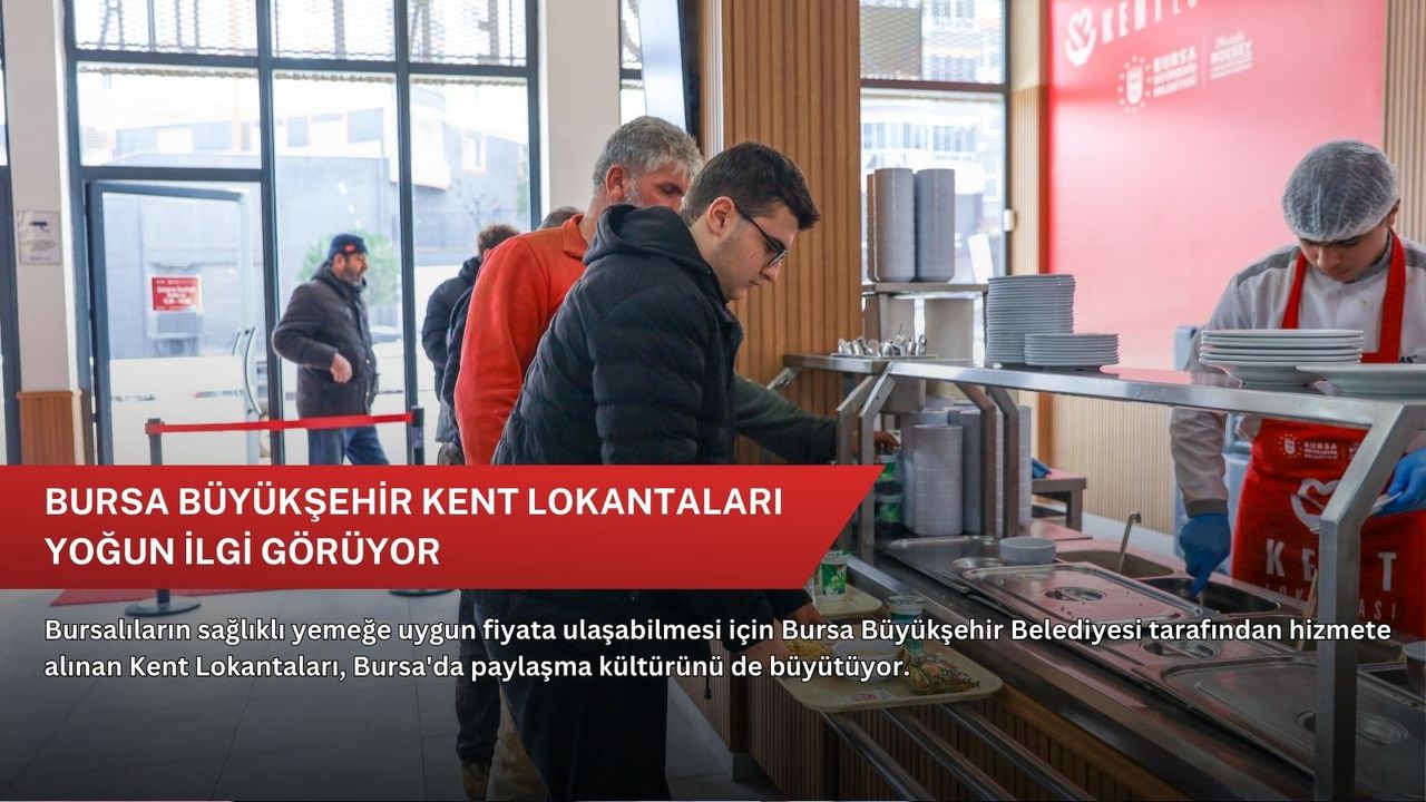 Sosyal belediyecilik anlayışıyla insan odaklı hizmetlerini sürdüren Bursa Büyükşehir Belediyesi; Merinos Parkı, Vatan ve Yiğitler mahallelerindeki kent lokantalarıyla vatandaşların uygun fiyata ve sağlıklı yemeğe ulaşabilmesini sağlıyor.
