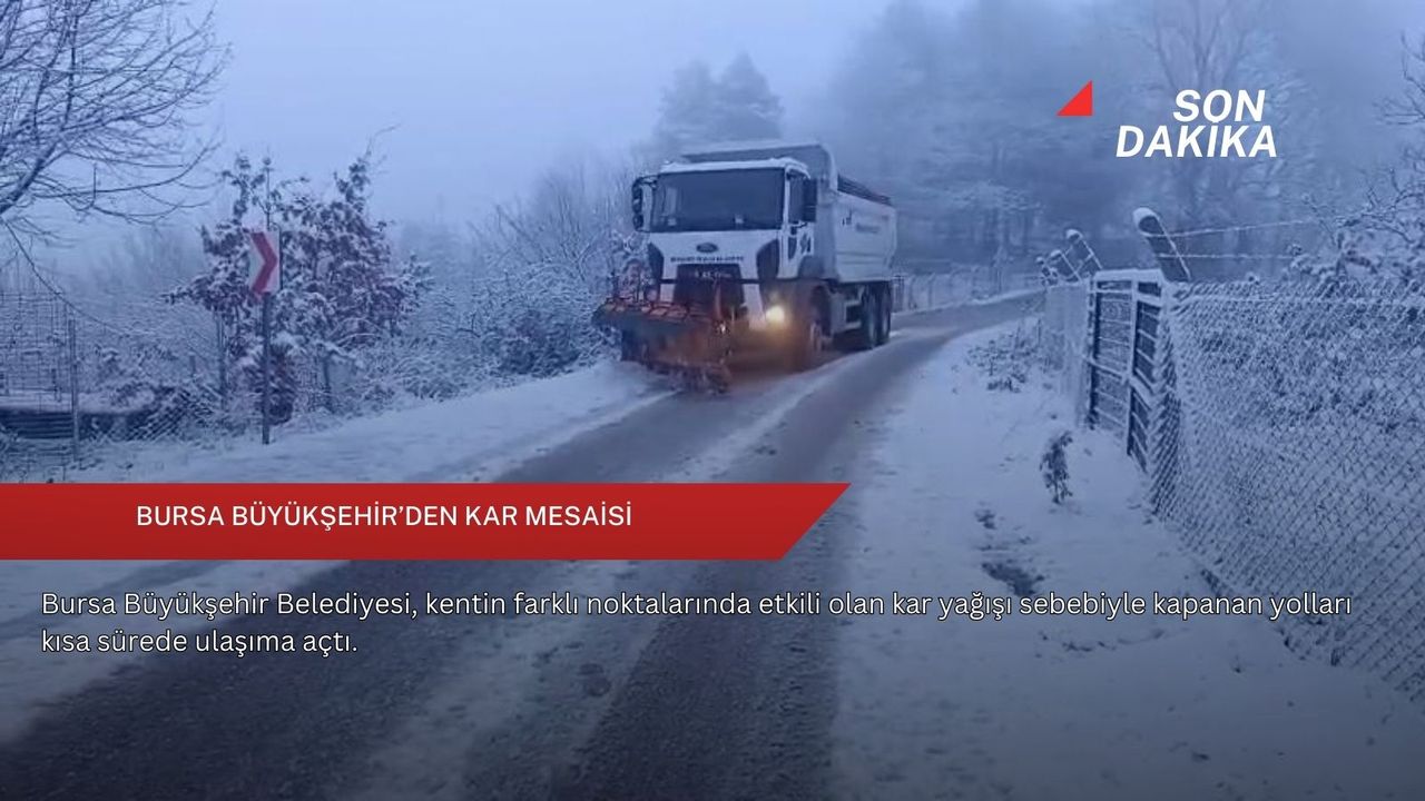 Bursa’da gece saatlerinden itibaren etkisini gösteren kar yağışının ardından teyakkuza geçen Büyükşehir Belediyesi ekipleri, ulaşımın aksamaması için AKOM koordinasyonunda çalışmalarını sürdürdü. Bu kapsamda 42 iş makinesi 29 tuzlama aracı ve 245 personel ile karla mücadele çalışmaları yürütüldü. Keles’te 12, Kestel’de 9, Büyükorhan’da 6, İnegöl’de 4, Gürsu ve İznik’te birer olmak üzere toplam 33 mahalle yolu kısa sürede ulaşıma açıldı.