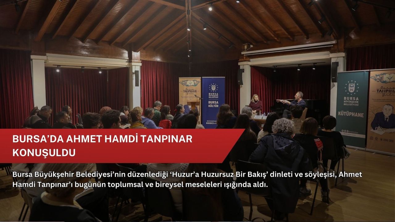 Dinletinin ardından Yazar Sırma Köksal ve Yazar Emre Ayvaz, Tanpınar’ın başyapıtlarından ‘Huzur’ adlı romanı ekseninde bir söyleşi gerçekleştirdi. Söyleşide, Tanpınar’ın metinlerinin aradan geçen zamana rağmen nasıl hala canlılığını koruduğu, bugünün toplumsal ve bireysel deneyimleri üzerinden değerlendirildi. Yoğun ilgi gören etkinliğin ardından katılımcılar, sanata ve edebiyata katkılarından dolayı Bursa Büyükşehir Belediye Başkanı Mustafa Bozbey’e teşekkür etti.