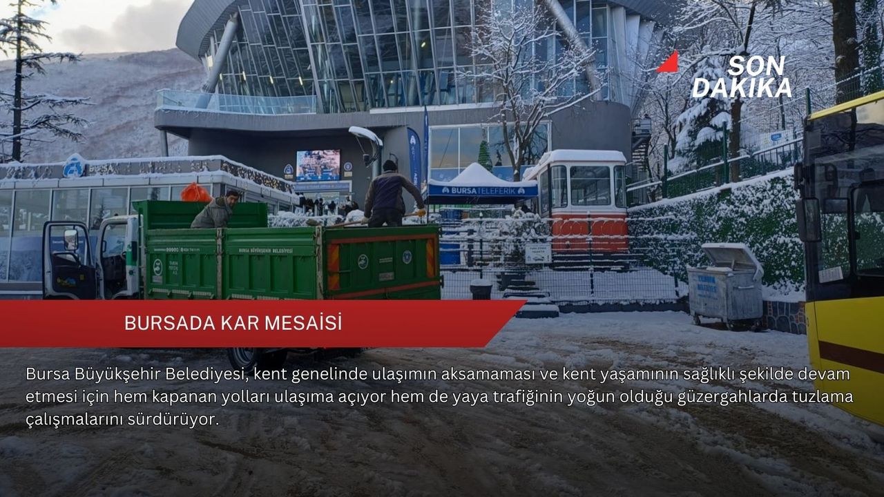 Trafiğe kapalı yol bulunmazken, Bursa Büyükşehir Belediyesi ekipleri görev yerlerinde çalışmalarını sürdürüyor. Yetkililer, vatandaşları buzlanma, don ve ulaşımda yaşanabilecek olumsuzluklara karşı dikkatli olmaları konusunda uyararak, resmi kurumların duyurularının takip edilmesini istedi.