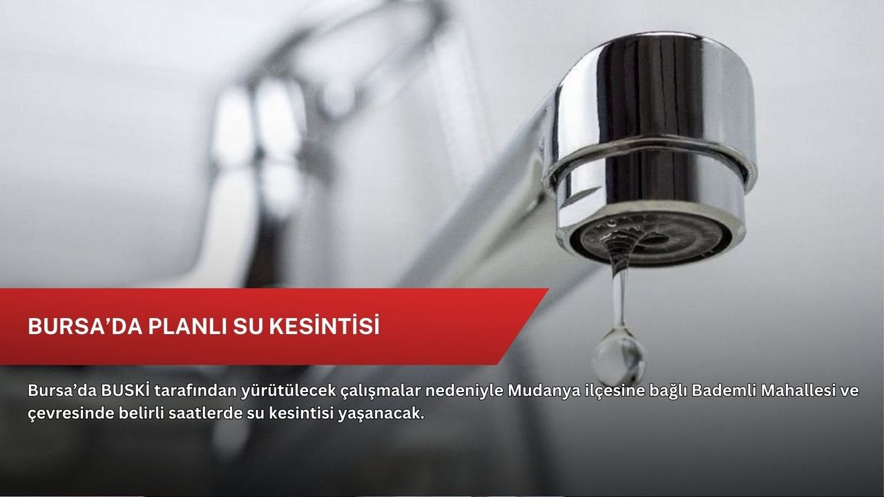 Bursa Büyükşehir Belediyesi’nden yapılan açıklamaya göre, BUSKİ Genel Müdürlüğü Kanalizasyon Dairesi Başkanlığı’nın çalışmaları sırasında içme suyu hatlarında oluşabilecek olası arızalara karşı tedbir amaçlı olarak, 7–21 Şubat 2026 tarihleri arasında her gün 09.00 ile 18.00 saatleri arasında zaman zaman su kesintisi uygulanacak.