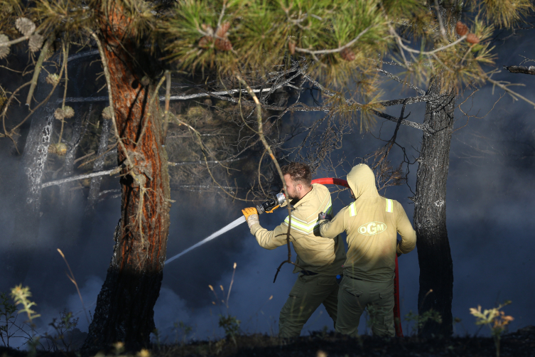 Gece boyunca 1777 personel ve 688 araçla aralıksız sürdürülen yangını kontrol altına alma çalışmalarında günün ağarmasıyla havadan müdahaleye de yeniden başlandı.