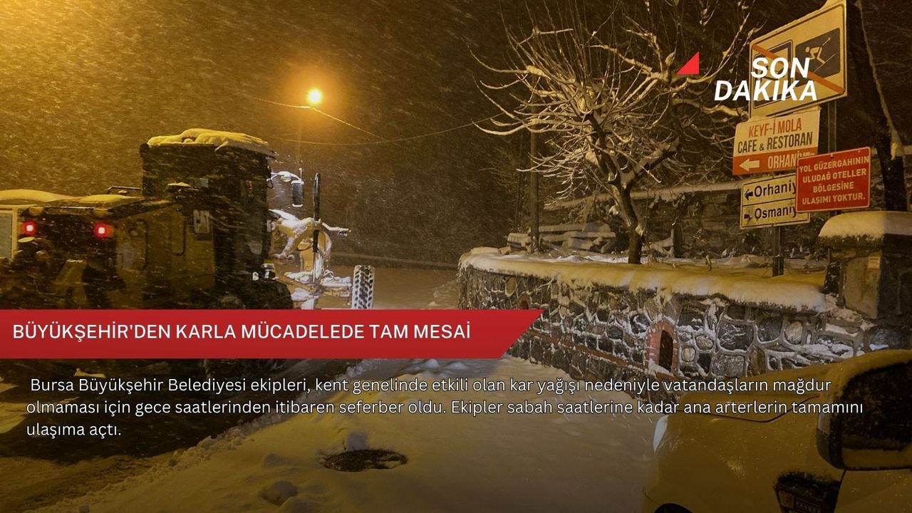 Kent genelinde iki vardiya halinde görev alan toplam 1021 personel, 203 iş makinesi ve kar küreme aracıyla çalışmalarını kesintisiz sürdürerek 87 mahalle yolunu trafiğe açtı. Karla mücadele kapsamında İnegöl’de ve Keles’te 18, İznik’te 11, Büyükorhan’da 10, Mustafakemalpaşa’da 9, Kestel’de 9, Orhangazi’de 4, Gürsu ve Karacabey’de 3, Harmancık’ta ise 2 mahalle yolu ulaşıma açıldı. Kent genelinde kapalı yol bulunmazken, Büyükşehir ekipleri, ana arterler, bağlantı yolları ve yüksek kesimlerde kar küreme ve tuzlama çalışmalarını aralıksız yürütüyor.