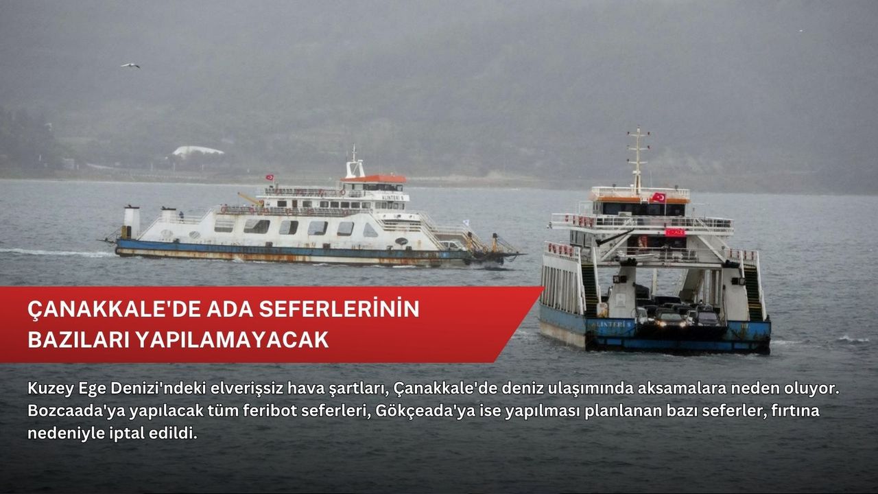 Çanakkale Boğazı ile Adalar hattında yolcu ve araç taşımacılığı yapan GESTAŞ firması, Ege Denizi'nin kuzeyindeki olumsuz hava şartları nedeniyle iptal duyurusunda bulundu.