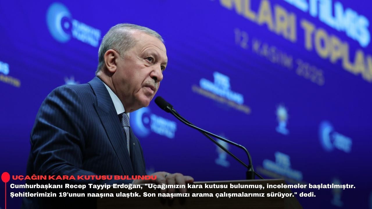 Uçağın kara kutusunun bulunduğunu ve incelemelerin başladığını söyleyen Erdoğan, şehitlerin 19'unun naaşına ulaştıklarını, son naaşı arama çalışmalarının sürdüğünü belirtti.
