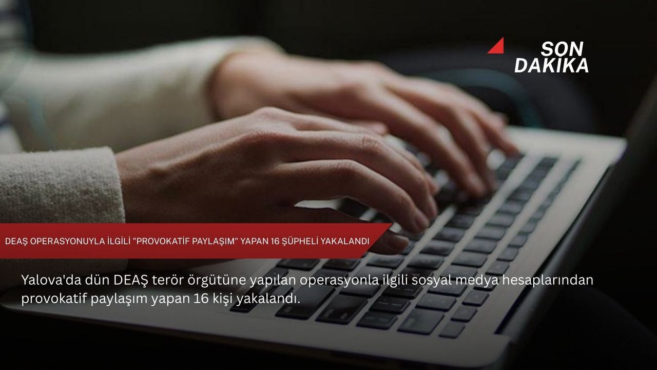 İçişleri Bakanı Ali Yerlikaya, Yalova'da dün DEAŞ terör örgütüne yapılan operasyonla ilgili sosyal medya hesaplarından provokatif paylaşım yapan 16 kişinin yakalandığını duyurdu.