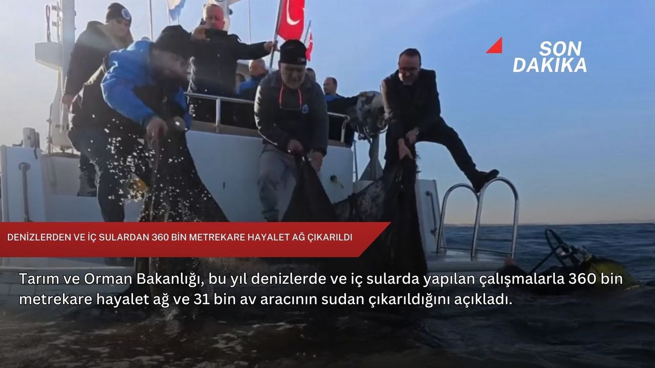 Buna göre; 2025 yılında, 420 milyon metrekare alan tarandı, 360 bin metrekare hayalet ağ ve 31 bin av aracı sudan çıkarıldı.