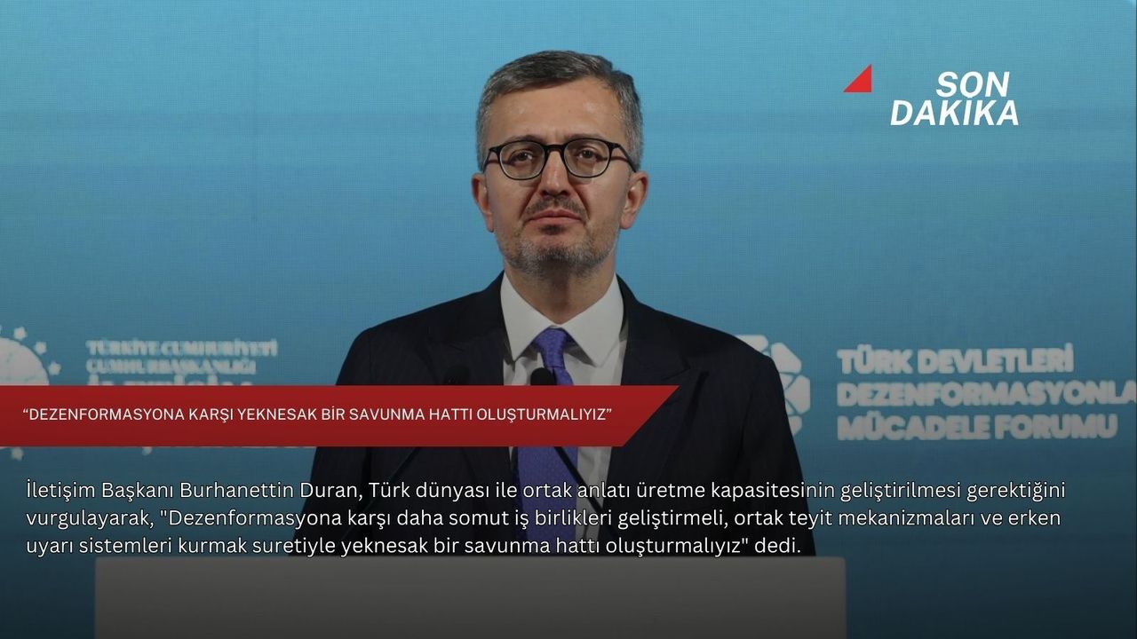İletişim Başkanı Duran, İletişim Başkanlığı ev sahipliğinde düzenlenen "Türk Devletleri Dezenformasyonla Mücadele Forumu"na ilişkin sosyal medya hesabından açıklamalarda bulundu.