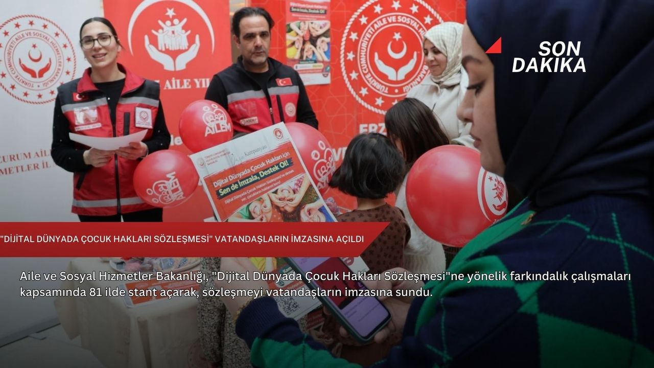 Bu kapsamda, çocukları dijital mecraların olumsuz etkilerinden korumak ve olası risklere karşı işbirliğini güçlendirmek amacıyla 81 ilde şehir merkezlerinde stantlar kurularak, "Dijital Dünyada Çocuk Hakları Sözleşmesi" vatandaşların imzasına sunuldu.