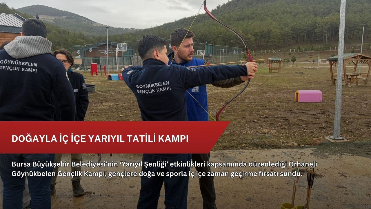 Bursa Büyükşehir Belediyesi Gençlik ve Spor Hizmetleri Dairesi Başkanlığı Gençlik Hizmetleri Şube Müdürlüğü tarafından ‘Yarıyıl Şenliği’ etkinlikleri kapsamında gerçekleştirilen Orhaneli Göynükbelen Gençlik Kampı, gençlerin yarıyıl tatilini dolu dolu geçirmesini sağladı. 11-17 yaş arası öğrencilerin iki grup halinde katıldığı 3 günlük kampta, sokak oyunları, doğa yürüyüşleri, ebru sanatı, okçuluk ve afet bilinçlendirme gibi birçok aktivite gerçekleştirildi. Kampta keyifli zaman geçiren toplam 120 öğrenci, doğa ile iç içe eğlenceli ve öğretici tatil yapma imkanı buldu.