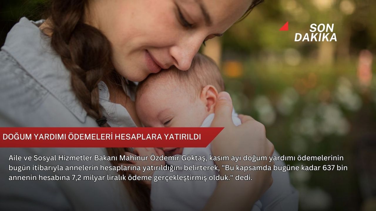 Aile Yılı'nda vatandaşlara verilen önemli desteklerden birinin doğum yardımları olduğunu belirten Göktaş, "Bu kapsamda kasım ayı doğum yardımı ödemelerini bugün itibarıyla annelerin hesaplarına yatırdık. Böylece bugüne kadar doğum yardımından faydalanan toplam 637 bin annenin hesabına 7,2 milyar liralık ödeme gerçekleştirmiş olduk. Bakanlık olarak aile olmayı teşvik eden, sürdürülebilir destek mekanizmalarıyla sağlıklı, bilinçli aileleri güçlendirmek için çalışmalarımıza devam edeceğiz. Ödemelerin bütün ailelerimize hayırlı olmasını diliyorum.” ifadelerini kullandı.