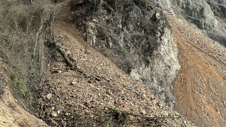 (İGFA) - Düzce'nin Beyköy Beldesi'nde kar sularının erimesiyle birlikte meydana gelen heyelanda yamaçtan kopan kaya parçaları yola düştü.