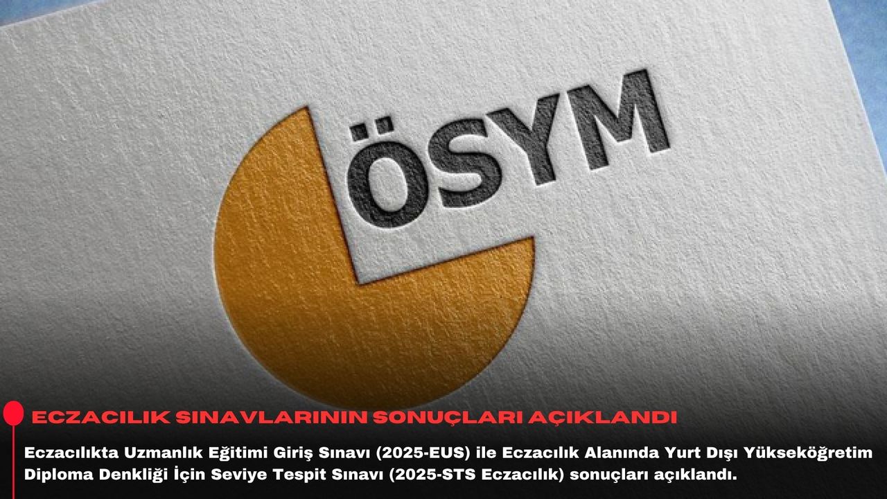 Ölçme, Seçme ve Yerleştirme Merkezinden (ÖSYM) yapılan açıklamada, 11 Ekim 2025'te uygulanan 2025-EUS ile 2025-STS Eczacılık'ın değerlendirme işlemlerinin tamamlandığı bildirildi.