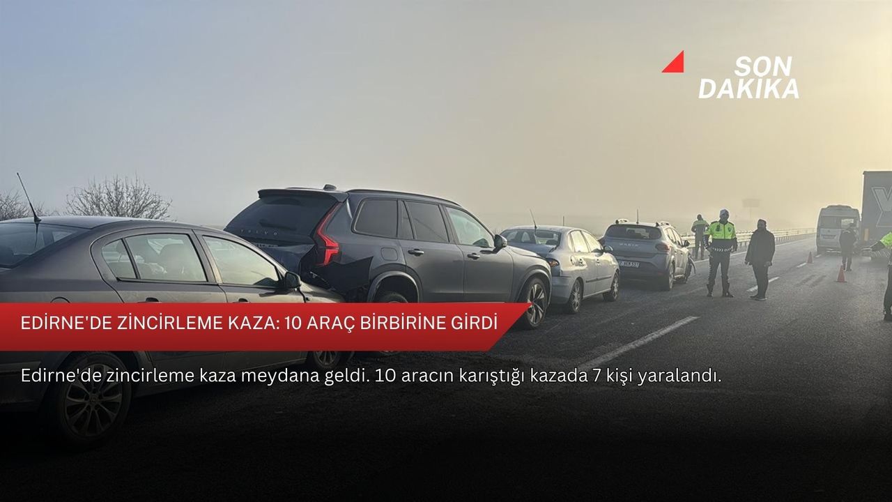 Edirne-Havsa D-100 kara yolunun 32. kilometresi, Sazlıdere köyü yakınlarında 10 aracın karıştığı zincirleme trafik kazası meydana geldi.