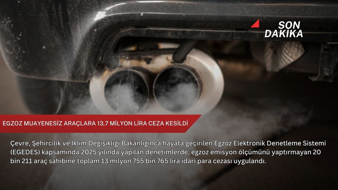 Sistemle 2025 yılında yapılan 20 bin 211 denetimde muayene yaptırmayan araç sahiplerine 13 milyon 755 bin 675 TL para cezası uygulandı.