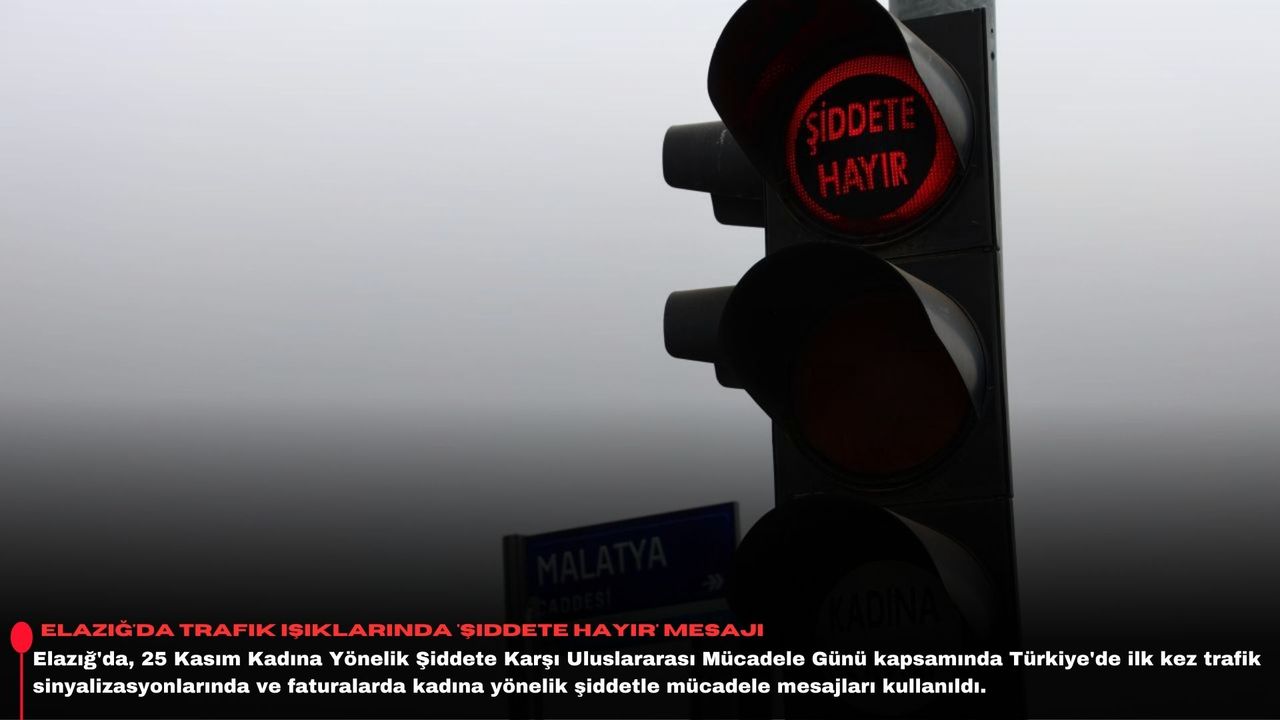 Elazığ'da trafik ışıklarında 'şiddete hayır' mesajı