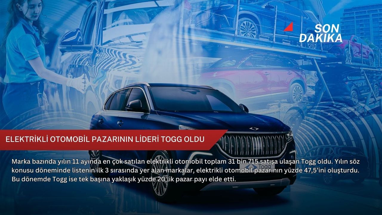Yılın söz konusu döneminde listenin ilk 3 sırasında yer alan markalar, elektrikli otomobil pazarının yüzde 47,5’ini oluşturdu. Bu dönemde Togg ise tek başına yaklaşık yüzde 20'lik pazar payı elde etti.