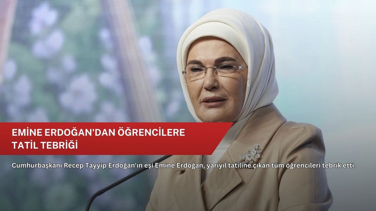 Paylaşımında, eğitim-öğretim yılının ilk yarısını başarıyla tamamlayan tüm öğrencileri kutlayan Emine Erdoğan, "Yarıyıl tatilinin çocuklarımızın dinlenmeleri, kendilerini yeniden keşfetmeleri ve yeni hedeflere hazırlanmaları için vesile olmasını temenni ediyorum. Bilgi ve erdemle güçlenen değerli öğrencilerimizin yolu daima açık olsun." ifadelerini kullandı.