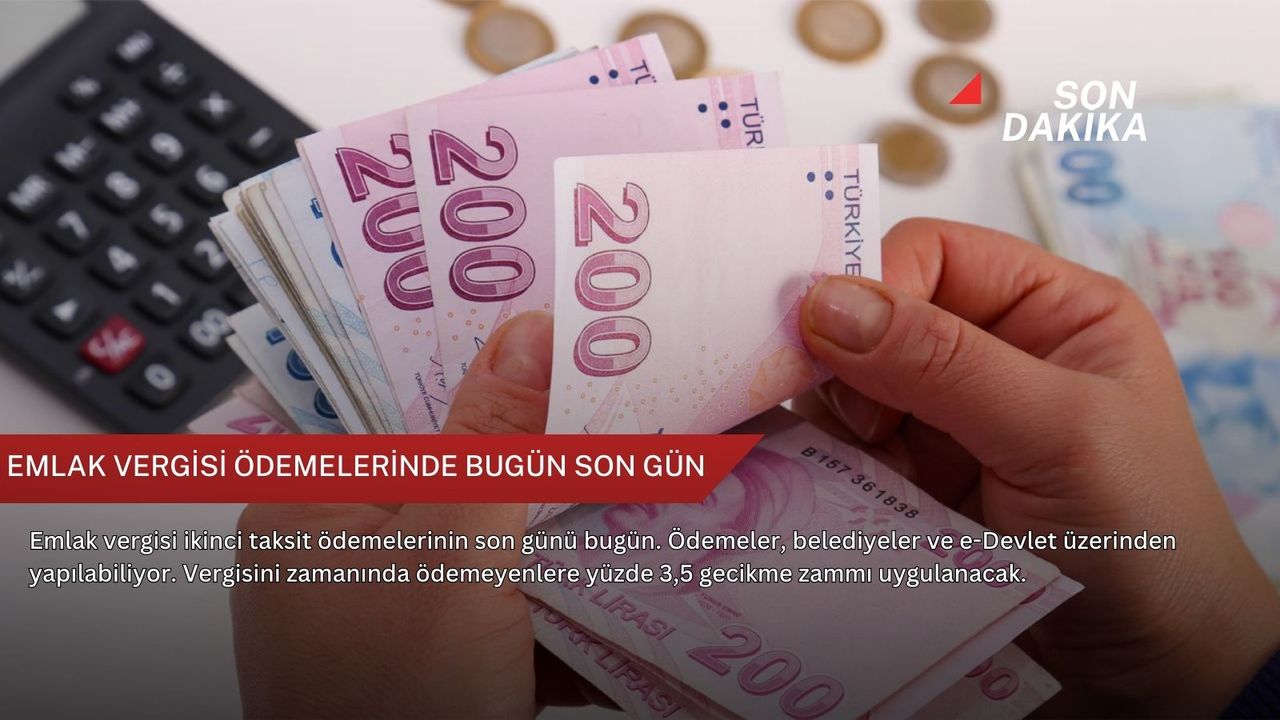 Bina, arsa ve iş yeri gibi gayrimenkulleri bulunanların, vergi ödemeleri için süre bugün sona eriyor.